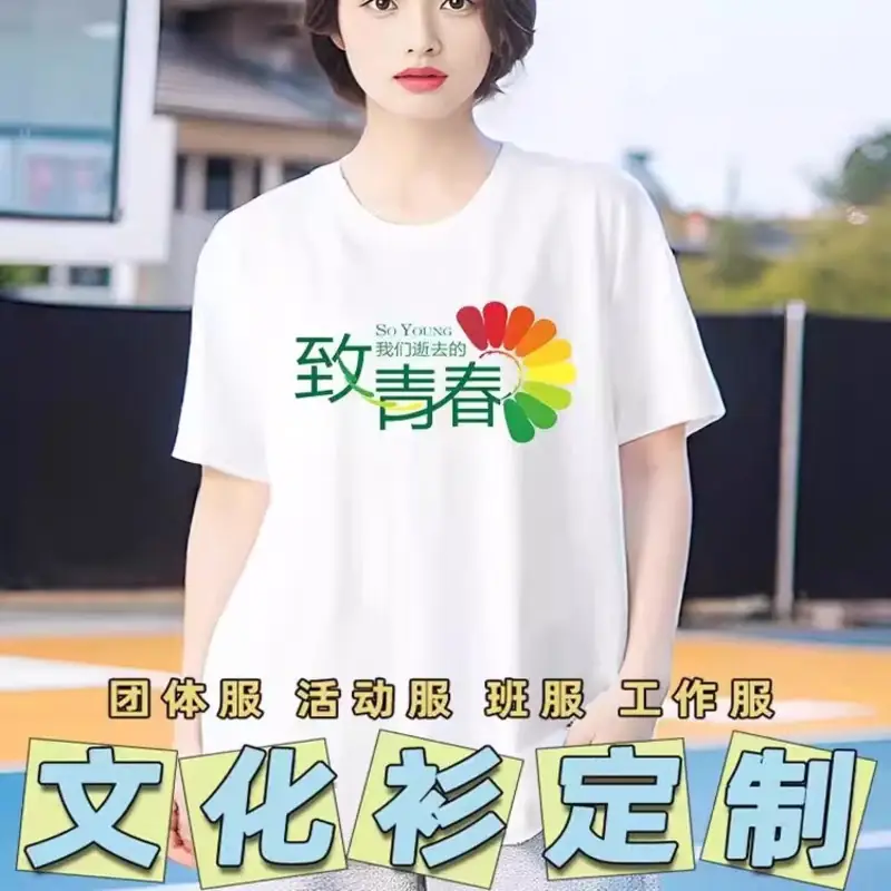 特点:服饰工艺:丝印; 适用对象:青少年,大码,青年,中年,老年; 穿着方式:套头; 领型:圆领; 适用季节:夏季; 功能:不起球 不变形 抗皱 宽松 透气 定制款; 袖长:短袖; 运动系列:文化衫,工服,全色系; 衣长:常规; 适用性别:男女通用; 尺码:M、L、XL、2XL、3XL;4XL、5XL、 颜色分类:可定制